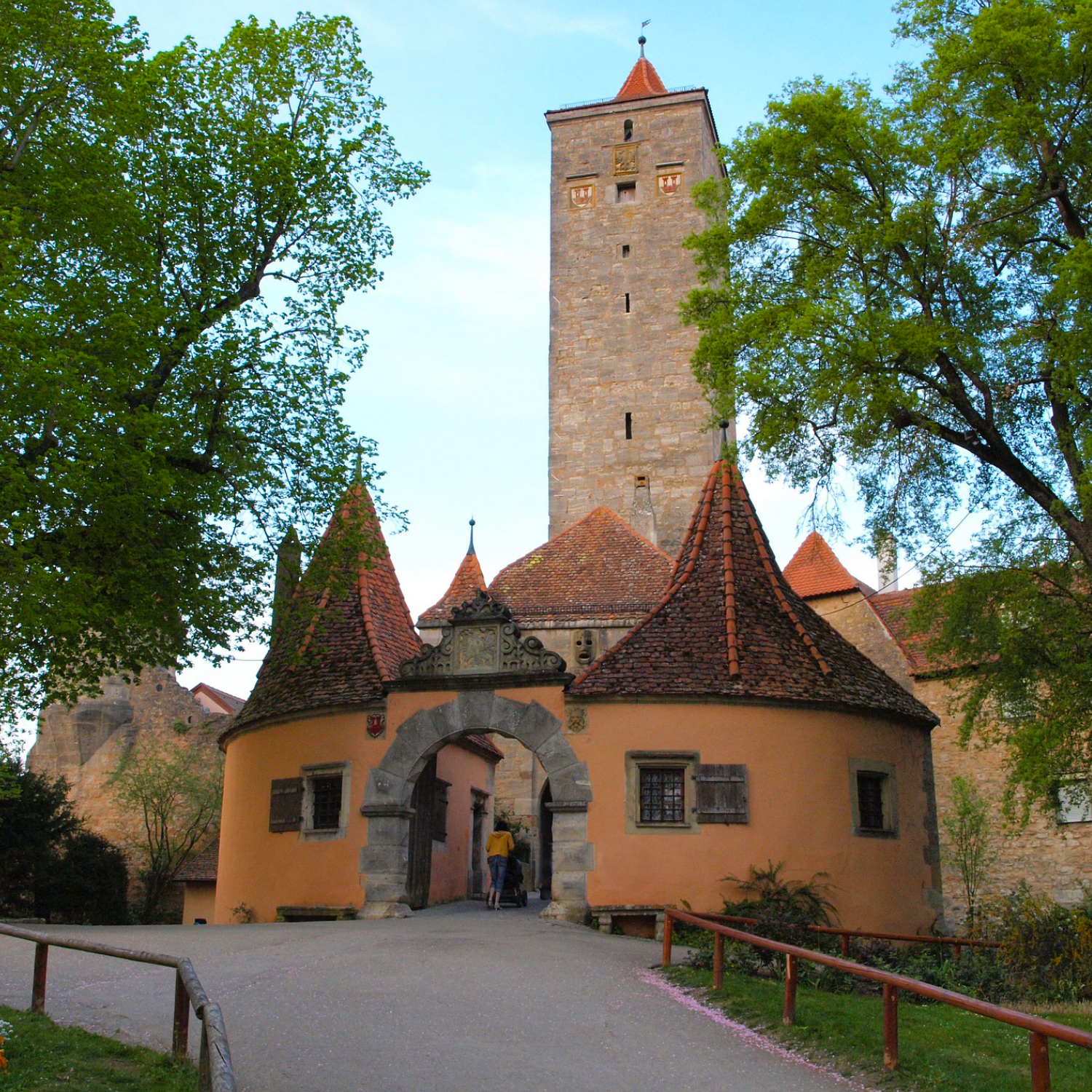 Am Spitaltor erklimmen wir wieder die Stadtmauer und folgen dem Wehrgang, nun wieder in luftiger Höhe, vorbei am »kleinen und großen Sternturm« zum »Ruckesser« oder auch »Schwefelturm«. Über den »Faulturm« und den »Hohennersturm« geht es dann zurück zum Startpunkt unserer Tour, dem »Rödertor« und dem gleichnamigen »Röderturm«. Er ist, neben dem Rathausturm, der einzige zugängliche Turm auf der Stadtmauer und bietet als krönenden Abschluss des Rundweges einen fulminaten Ausblick über die historische Altstadt von Rothenburg ob der Tauber.